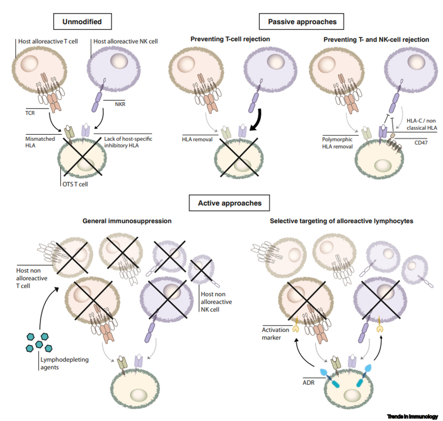 ▲ 主動(dòng)的方法可以通過(guò)非選擇性抑制宿主免疫(清除宿主淋巴細(xì)胞,包括 CD52/CD38 單克隆抗體和 FOLFOX);