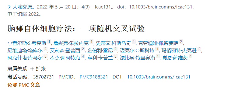 2022年,一項(xiàng)隨機(jī)、盲法、安慰劑對(duì)照、交叉臨床試驗(yàn)檢查了使用基于自體單核細(xì)胞療法的CP治療方法的安全性和運(yùn)動(dòng)功能改善情況。使用自體BMMNC或自體臍帶血作為治療,總共20名患者被隨機(jī)分配至2:1治療組:安慰劑組。被隨機(jī)分配到安慰劑組的參與者在12個(gè)月的治療后訪視期間接受了BMMNC或臍帶血治療。這項(xiàng)研究的數(shù)據(jù)表明,兩種干細(xì)胞輸注都是安全的。盡管所用劑量的干細(xì)胞治療并未顯著改變運(yùn)動(dòng)功能,但數(shù)據(jù)表明,一些患者的髓鞘形成可能有所改善,這與GMFM量表的適度改善相關(guān)。接受干細(xì)胞治療的15名患者中,有10名患者在治療后表現(xiàn)出皮質(zhì)脊髓束徑向擴(kuò)散率持續(xù)下降。