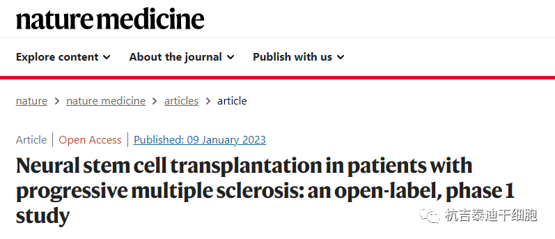 2023年,醫學權威期刊《nature》發表了一項意大利進行的“干細胞治療進行性多發性硬化癥(PMS)的1期臨床研究(NCT03269071)”結果,為多發性硬化癥的治療帶來了新的希望和可能性。