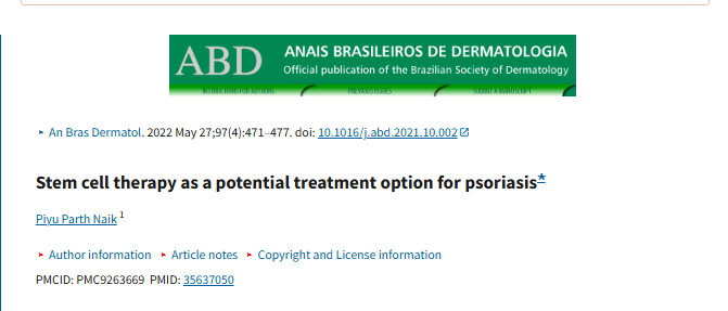 2022年5月27日,沙特德國醫院在國際期刊《ANAIS BRASILEIROS DE DERMATOLOGIA》上發布了一篇《干細胞療法是治療牛皮癬的潛在選擇》的研究結果。
