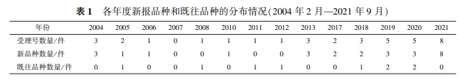 2004年申報(bào)注冊臨床的品種為3個(gè),且均在召開專家會(huì)并補(bǔ)充資料之后批準(zhǔn)其開展Ⅰ期臨床試驗(yàn)。 次年,申報(bào)注冊臨床試驗(yàn) 的受理號(hào)有2個(gè),但其中1個(gè)為既往品種根據(jù)其研究進(jìn)展提交的下一步研究計(jì)劃申請,1個(gè)為新品種,見表1。