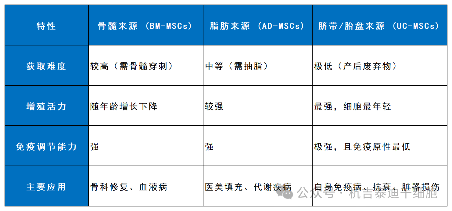 為了更精準地應用,我們需要了解不同來源MSCs的特性差異: