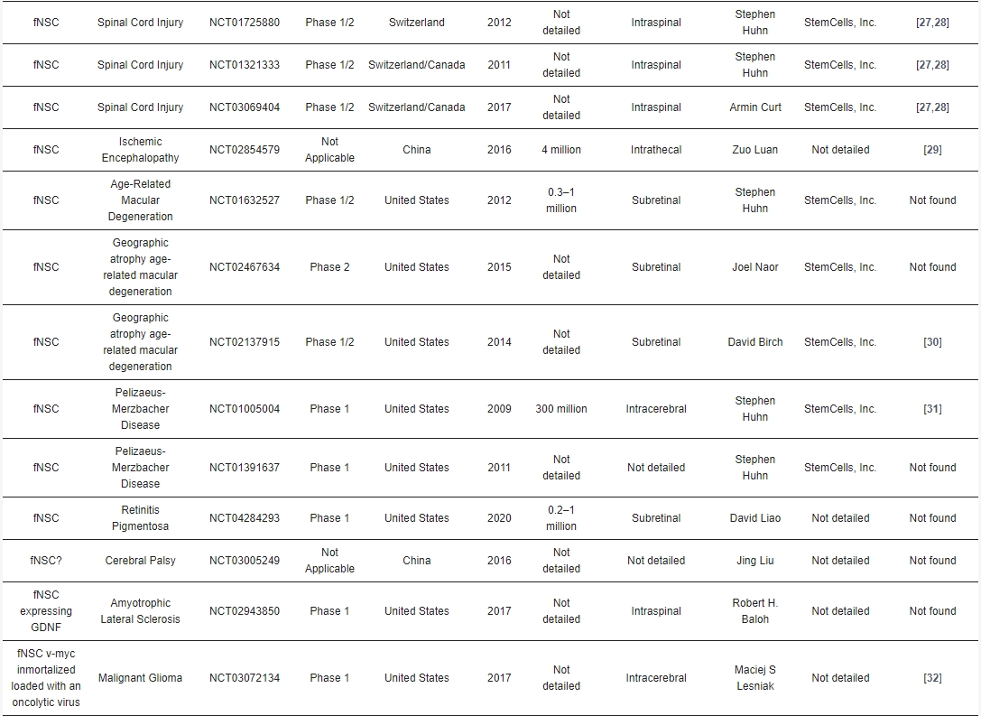 迄今為止進行的大多數臨床試驗都采用從人類胎兒中樞神經系統(大腦和/或脊髓)獲得的NSC(表格1)。大多數情況下,組織是從選擇性終止妊娠中收集的,這引起了重大倫理問題,并受到許多人基于道德和宗教理由的反對。反墮胎活動人士提出了使用胎兒組織可能鼓勵婦女墮胎的想法,盡管沒有證據表明使用胎兒組織用于治療或商業目的會增加選擇墮胎的數量。然而,fNSC的使用存在社會爭議并受到嚴格監管,在一些國家被禁止。