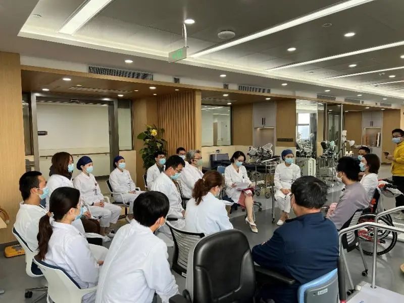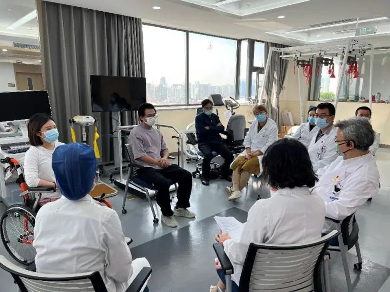 教育處黃蕾副處長從醫患溝通、心理疏導等方面對兩位受試者及家屬進行了詢問和指導,“如果碰到一個和您有類似遭遇的新患者,您會如何開導他”,這樣開放式的問題讓患者通過另一個視角理解和解讀自身的治療過程和對疾病診治的認識。病區護理部第榮靜護士長、項目Sub-PI吳周睿醫師、康復組趙麗娟醫師也從不同角度與趙先生和劉女士這2個月住院期間的治療體會進行交流。