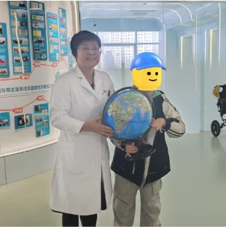 劉晶教授向毛毛贈送AR地球儀,寓意“從不會走到走得穩,從大連走向世界”。毛毛的父母感慨:“干細胞治療不僅給了孩子雙腿,更給了他擁抱世界的勇氣。”