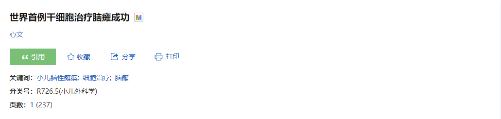 2005年,世界首例干細(xì)胞治療腦癱成功[1]。