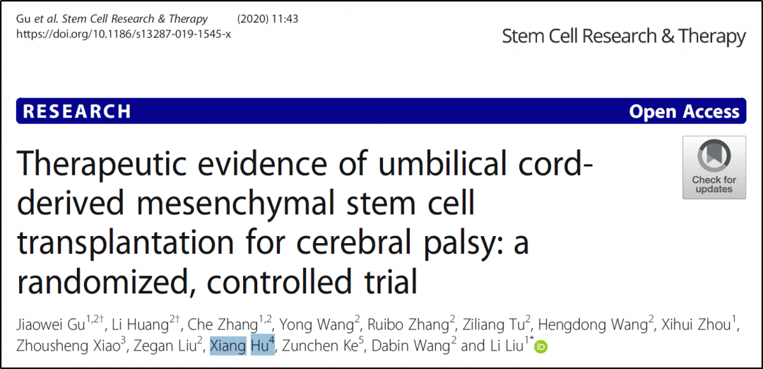 2023年2月,大連醫(yī)科大學(xué)第一附屬醫(yī)院劉晶教授在《StemCell Research &Therapy》期刊雜志上發(fā)表了一篇關(guān)于《腦癱神經(jīng)干細(xì)胞鼻內(nèi)給藥后的安全性和有效性結(jié)果:一項(xiàng)隨機(jī)1/2期對照試驗(yàn)》的論文。