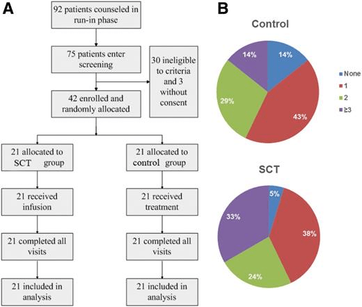 - 干細胞移植組21名患者中有15名患者(71.4%)在1年后AUCC-Pep水平從基礎值增加105.7%。相比之下,對照組21名患者中只有8名患者的AUCC-Pep水平下降7.7%。(圖2A和補充圖3A)