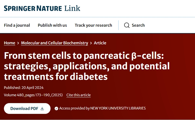 參考資料:Feng, X., Zhang, H., Yang, S.?et al.?From stem cells to pancreatic β-cells: strategies, applications, and potential treatments for diabetes.?Mol Cell Biochem?480, 173–190 (2025). https://doi.org/10.1007/s11010-024-04999-x