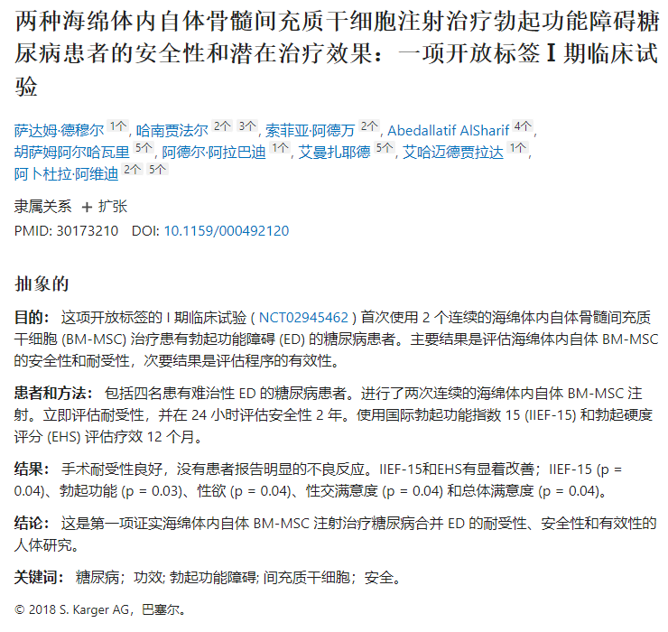 到目前為止,只有四項(xiàng)研究關(guān)注人類ED的干細(xì)胞療法。