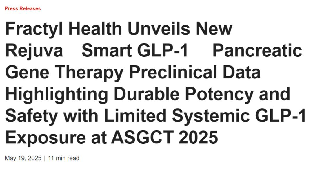 [8]https://www.globenewswire.com/news-release/2025/05/17/3083493/0/en/Fractyl-Health-Unveils-New-Rejuva-Smart-GLP-1-Pancreatic-Gene-Therapy-Preclinical-Data-Highlighting-Durable-Potency-and-Safety-with-Limited-Systemic-GLP-1-Exposure-at-ASGCT-2025.html