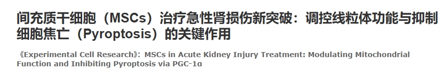 例如,2025年,《Experimental Cell Research》上發表了一項探究間充質干細胞(MSCs)治療急性腎損傷(AKI)的機制的研究成果。研究人員通過構建體內缺血 / 再灌注(I/R)模型,以此探究MSCs治療AKI的作用機制。