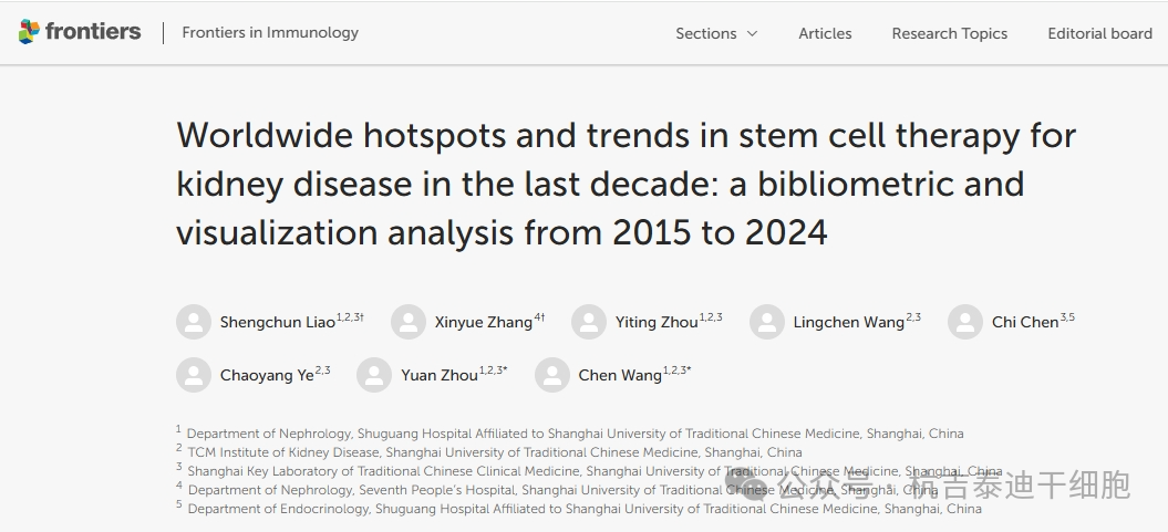 參考資料:[1]:iao S, Zhang X, Zhou Y, Wang L, Chen C, Ye C, Zhou Y and Wang C (2025) Worldwide hotspots and trends in stem cell therapy for kidney disease in the last decade: a bibliometric and visualization analysis from 2015 to 2024. Front. Immunol. 16:1619291. doi: 10.3389/fimmu.2025.1619291