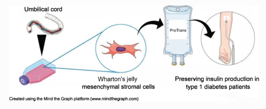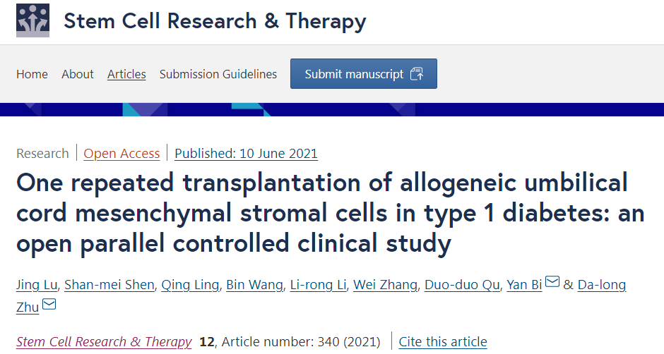 2023年5月21日,最新發(fā)表在《Diabetologia》糖尿病學雜志(2022年影響因子/JCR分區(qū):10.460/Q1)的一項來自瑞典的I/II期隨機雙盲安慰劑對照試驗證實,臍帶來源的間充質(zhì)干細胞可維持1型糖尿病患者內(nèi)源性胰島素的產(chǎn)生。