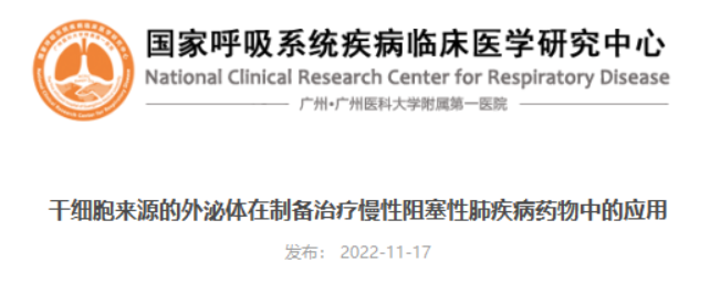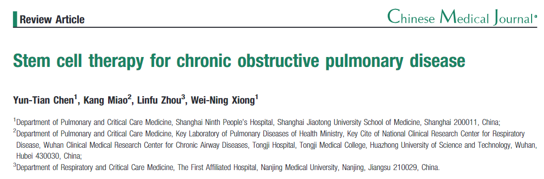 2012年7月發(fā)表在《中醫(yī)學雜志》上由上海交大九院?陳云田、?熊偉寧、同濟醫(yī)院?國家呼吸系統(tǒng)疾病臨床醫(yī)學研究中心、武漢市慢性氣道疾病臨床醫(yī)學研究中心苗康,?南京醫(yī)科大學第一附屬醫(yī)院周林甫,聯合發(fā)表了一項研究《干細胞治療慢性阻塞性肺疾病》綜述了歷年來。間充質干細胞(MSCs)治療COPD已發(fā)表的臨床研究的結果,分析了不同種類的干細胞、不同的細胞來源、不同的給藥方式和劑量來治療COPD的結果 。結論為安全并且表現正面的效果。