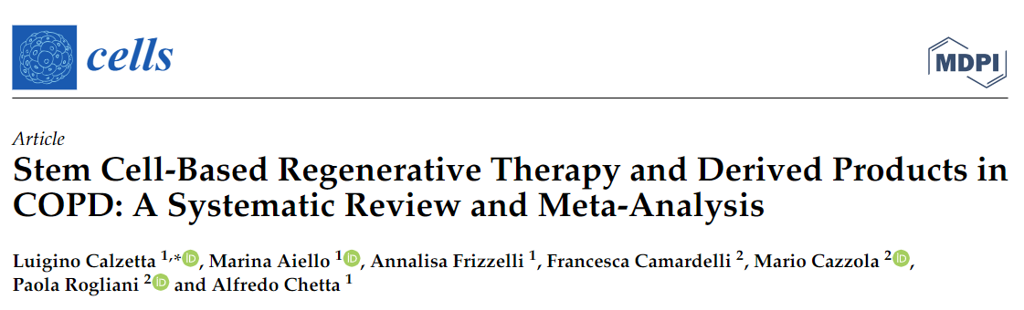 2022年5日,《細胞》雜志上發(fā)布了一篇標題為“基于干細胞的再生療法及其衍生產品在慢性阻塞性肺病 (COPD) 中的系統(tǒng)評價和薈萃分析”的研究。這項研究綜合評估了11個相關研究,并匯集了總計371名COPD患者的數據進行分析。