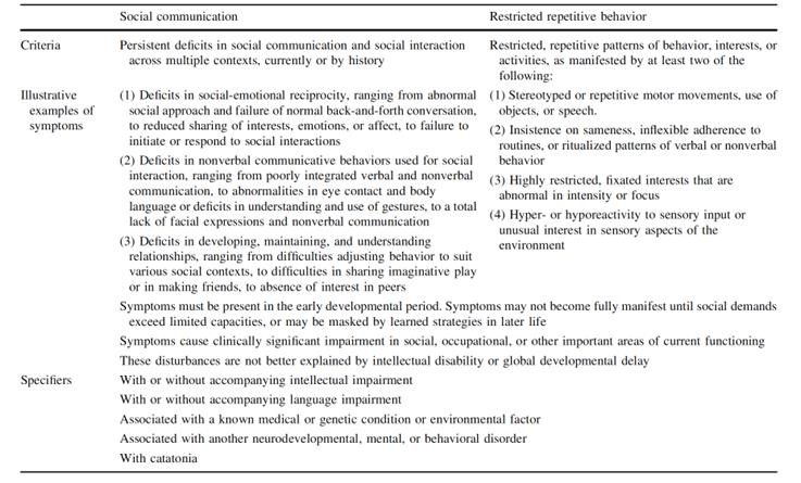 表1:在自閉癥譜系障礙的診斷中所考慮的標準。