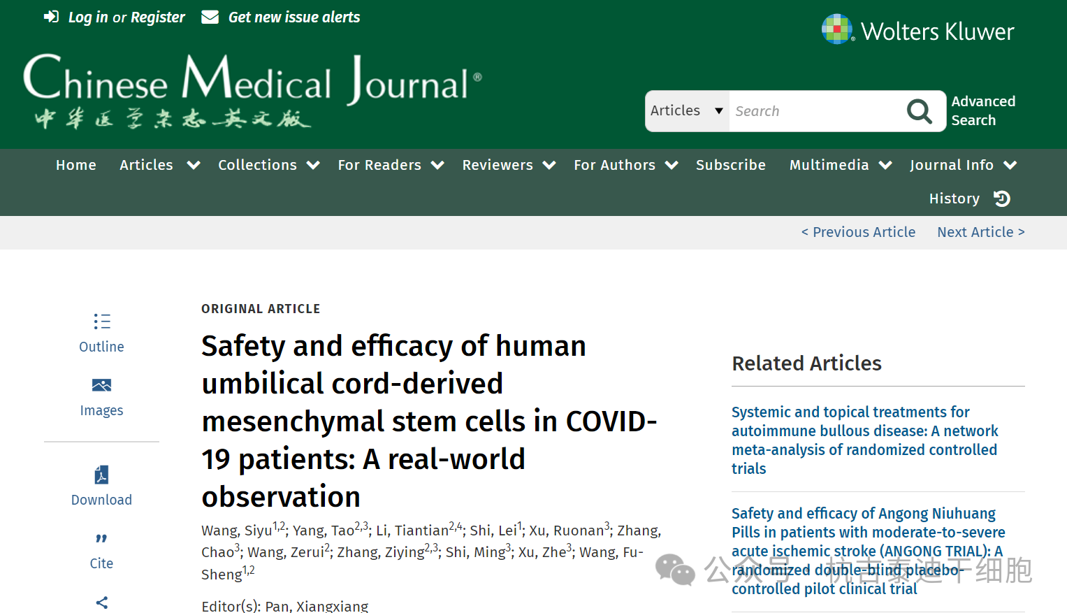 首次通過長達3年的前瞻性隨訪評估了臍帶間充質干細胞(UC-MSCs)治療重癥新冠肺炎(COVID-19)患者的長期效果。