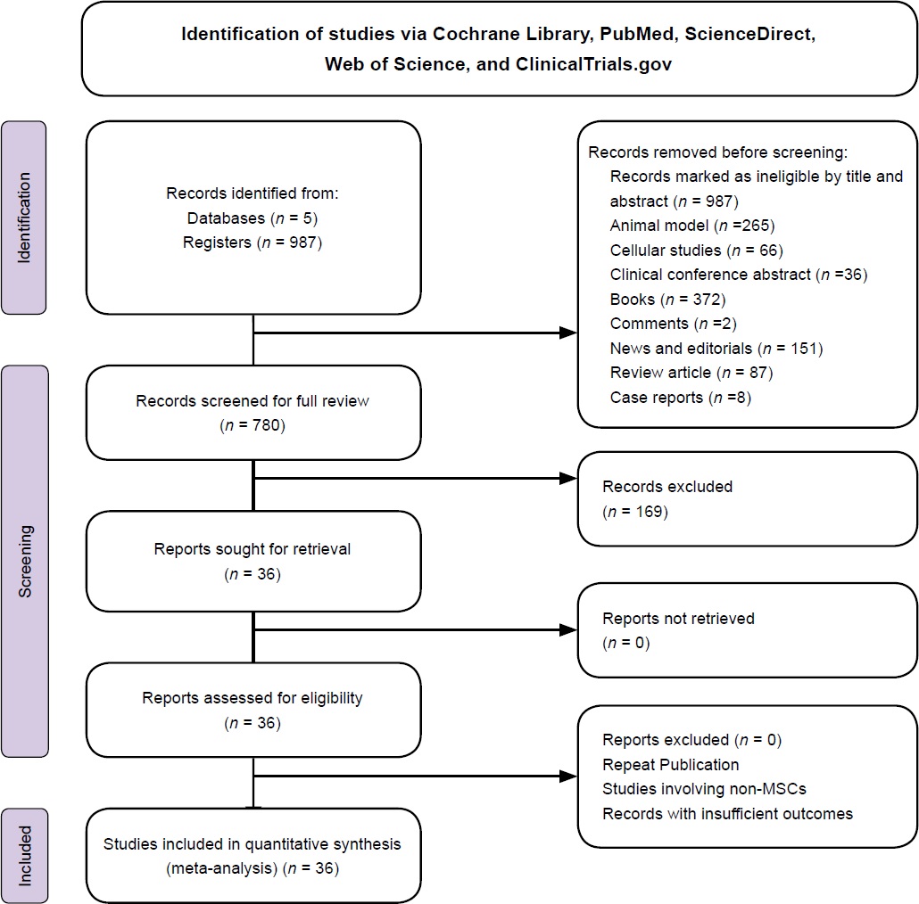 方法:這項薈萃分析僅限于已發表的評估靜脈注射MSC安全性的隨機對照臨床試驗,并通過搜索眾多目錄來查找合格研究,包括 Cochrane Library、PubMed、ScienceDirect、Web of Science 和 ClinicalTrials.gov(從建庫至2024年12月31日)。