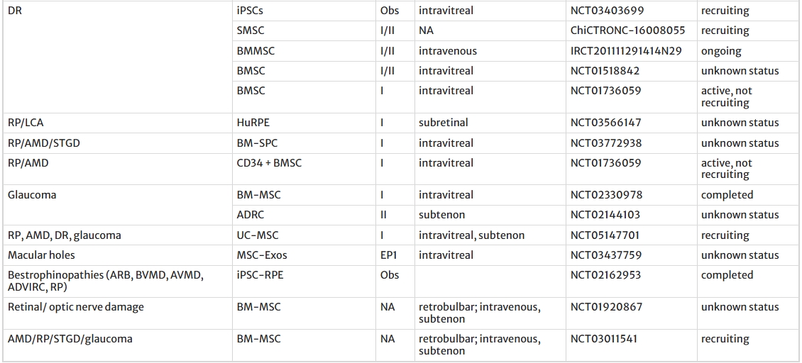 表2:細胞治療視網膜退行性疾病的臨床試驗(數據來源–?https://www.clinicaltrials.gov/)