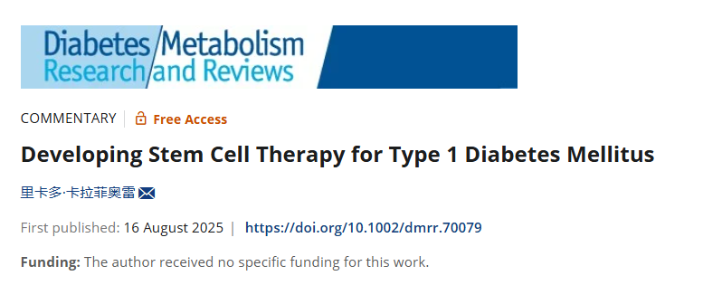 在這一背景下,國際著名期刊《糖尿病/代謝研究》近期刊發的”正在開發治療1型糖尿病的干細胞療法”研究綜述指出,人類干細胞因其供應幾乎無限且具備分化潛力,被視為重要解決方案[1]。