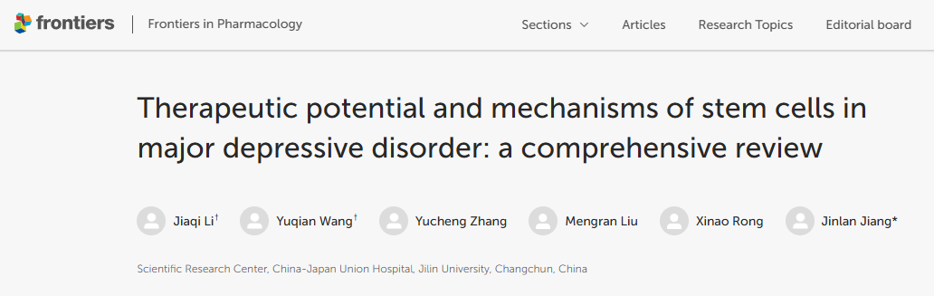 進(jìn)一步支持這一方向的是,2024年11月25日,吉林大學(xué)中日聯(lián)誼醫(yī)院科研中心在《藥理學(xué)前沿》雜志發(fā)表了一篇題為“干細(xì)胞在重度抑郁癥中的治療潛力和機制:綜合綜述”的研究綜述。
