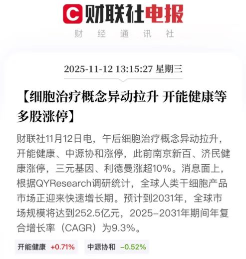 11月12日,A股市場見證了一場精彩的資本狂歡。干細胞概念股集體爆發:[3]