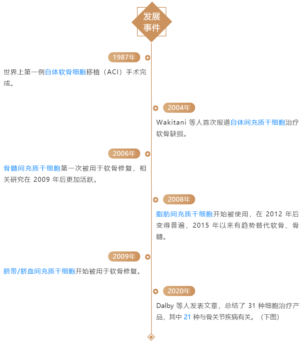 目前,有8款治療骨關節炎的干細胞新藥獲得國家藥品監督管理局(NMPA)臨床試驗默示許可。它們分別是:1款iPSC來源的間充質干細胞,1款胚胎干細胞來源的間充質干細胞,其余是6款均是脂肪或臍帶來源的天然間充質干細胞。