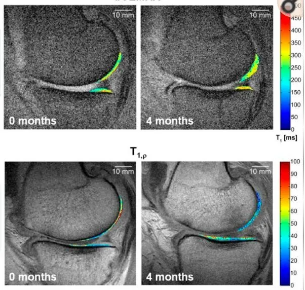該研究小組對55例部分關節切除患者進行關節腔內注射MSCs的研究,實驗組患者注射同種異體MSCs,對照組患者注射透明質酸鈉。通過VAS及 self-Lysholm 評估,結果顯示損傷癥狀得到緩解,1年MRI的追蹤檢測證實經過MSCs治療的患者半月板體積顯著增加。
