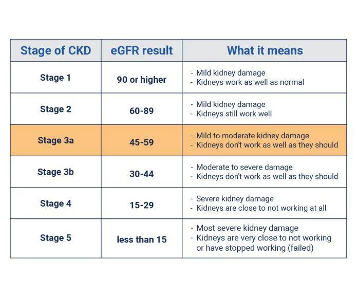 - 第3a階段意味著您的eFGR在45到59之間