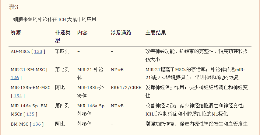 韓等。將骨髓來源的外泌體注射到ICH小鼠體內,發現血腫周圍的新生血管和成熟神經元數量增加,ICH小鼠的神經功能得到改善。