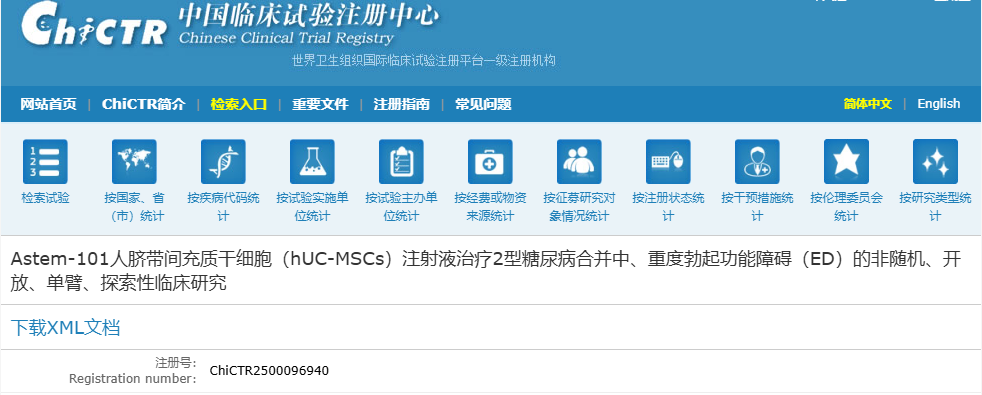 本研究已獲“中國臨床試驗注冊中心”(注冊號:ChiCTR2500096940)的預注冊。將嚴格按照臨床試驗規范(GCP)執行。若您對本研究有任何疑問,請進行郵件咨詢。期待有“糖友”能夠加試驗,讓干細胞療法為您的健康與“幸福”添上一份力!