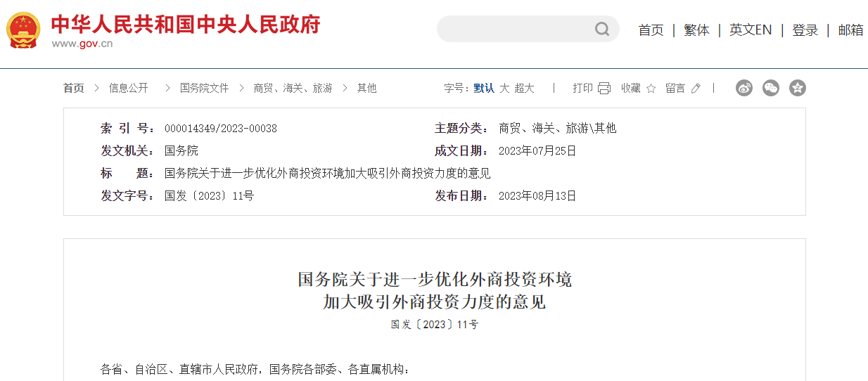 為了更好地應(yīng)對挑戰(zhàn),國務(wù)院日前發(fā)布《關(guān)于進一步優(yōu)化外商投資環(huán)境加大吸引外商投資力度的意見》,從提高利用外資質(zhì)量、保障外商投資企業(yè)國民待遇、持續(xù)加強外商投資保護、提高投資運營便利化水平、加大財稅支持力度、完善外商投資促進方式等六方面提出24項政策措施。