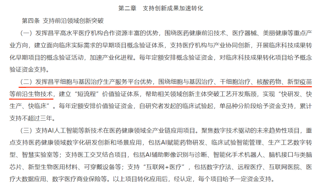 8月1日,北京市昌平區(qū)人民政府印發(fā)《中國(guó)(北京)自貿(mào)試驗(yàn)區(qū)科技創(chuàng)新片區(qū)昌平組團(tuán)促進(jìn)醫(yī)藥健康產(chǎn)業(yè)發(fā)展支持辦法》,重點(diǎn)支持包括細(xì)胞與基因治療(CGT)在內(nèi)的四大方向,實(shí)現(xiàn)細(xì)胞與基因治療、干細(xì)胞治療等前沿生物技術(shù)及相關(guān)領(lǐng)域的創(chuàng)新突破。(來(lái)源:昌平區(qū)人民政府官網(wǎng))