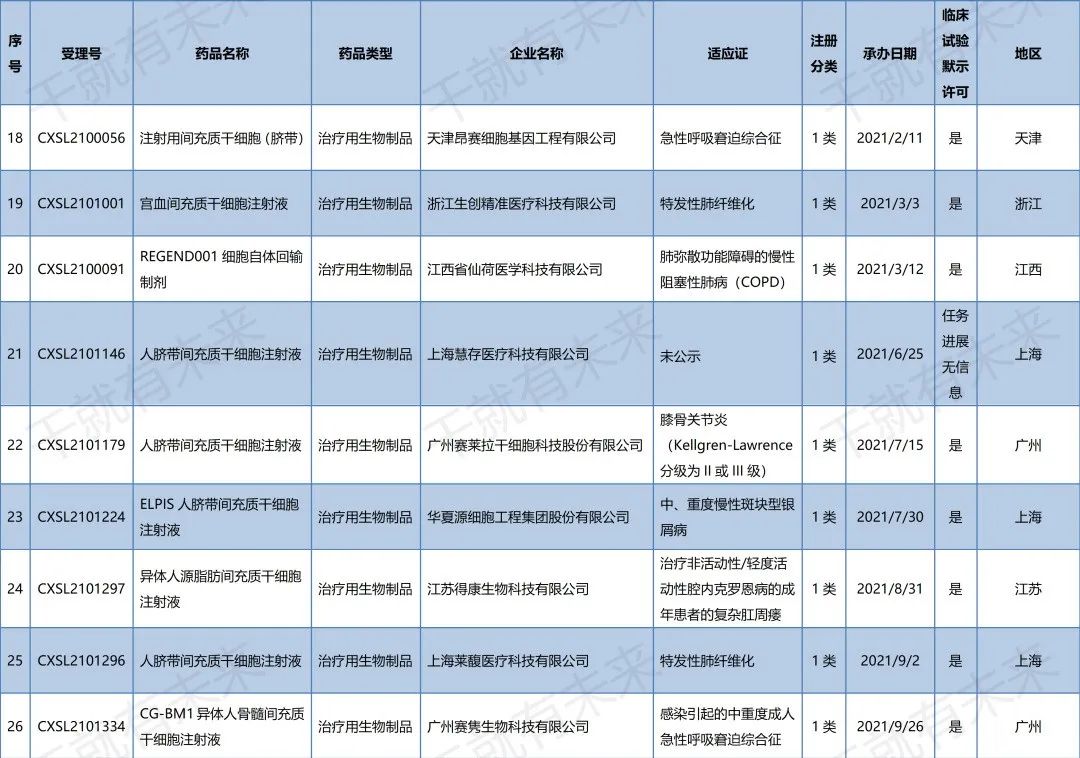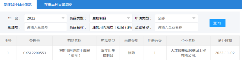 中國干細胞藥物注冊申報進展(2022年9月1日-11月30日)