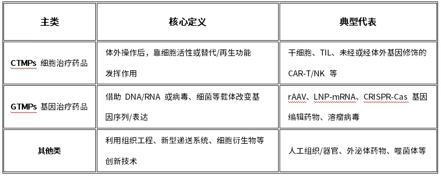 新政首次在官方文件中將先進(jìn)治療藥品(ATMP)明確劃分為三大核心類別: